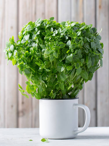 Der kleinblättrige Topfbasilikum hat einen kompakten Wuchs und ist damit ideal für den Anbau auf der Fensterbank oder dem Balkon.